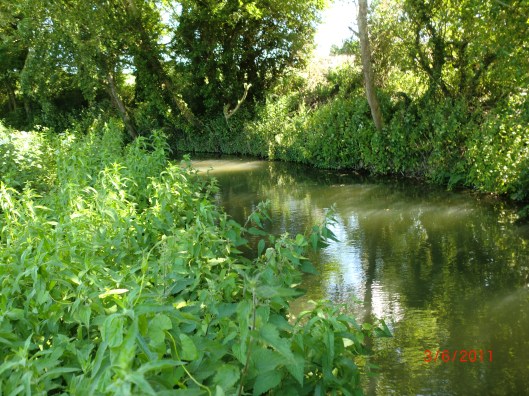 In fact in the adjacent farmland, the broad bean acreage, and the wheat, too, is only separated from the stream by the narrow margin of high nettle which made me grateful I was wadered, and this vegetation abbuts the six foot drop to the stream, which persuades members to bring long handle landing nets to capture their catch from above! And then there are the trees, bushes, stringy grasses, cow parsely et al. which combined with the side wind on this day, made casting a longer line and dry fly, testing to say the least. This is real, wild, small stream fishing, which Readers will know is exciting me, more and more.