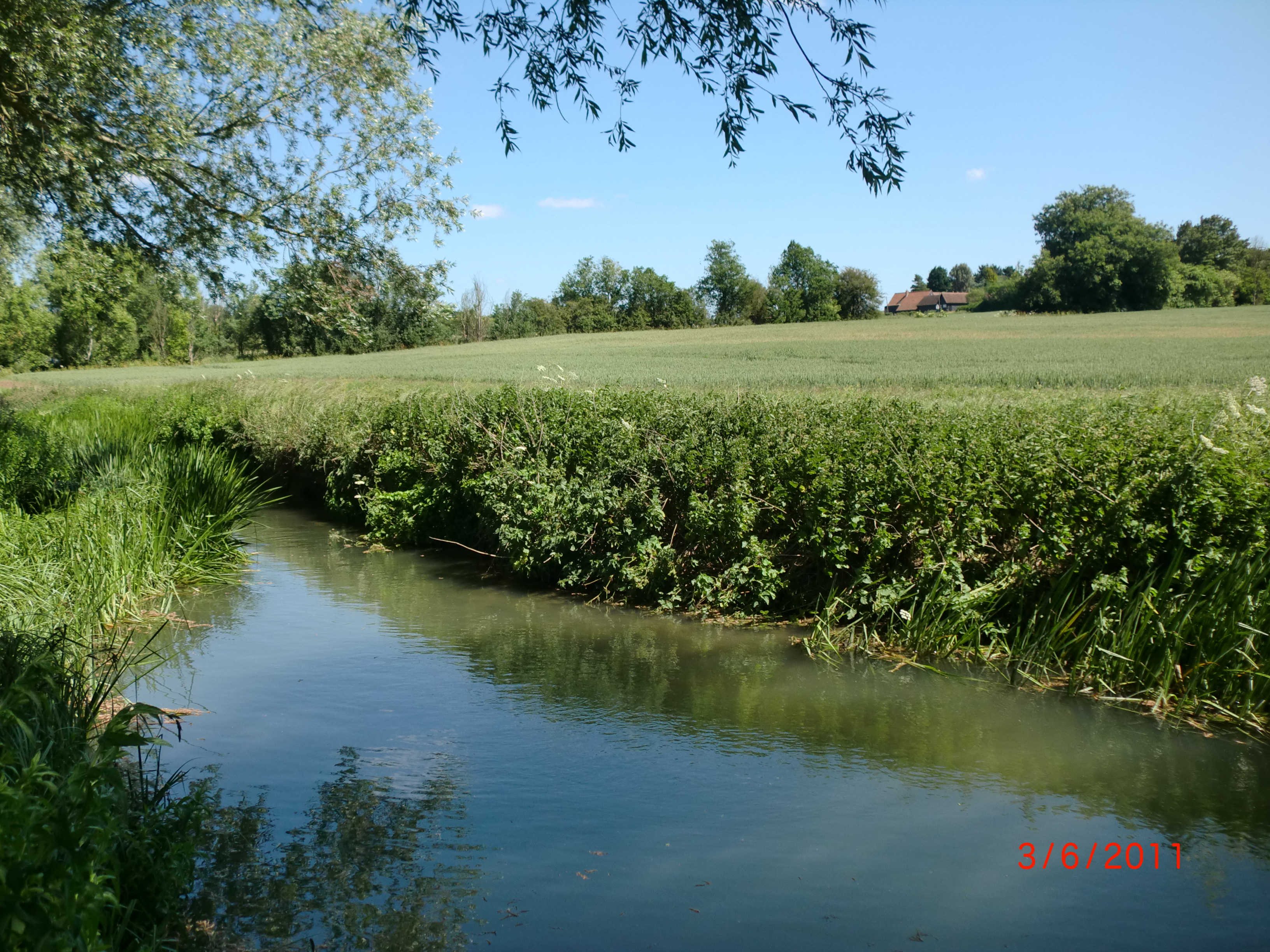 rather than a trout stream, but because it has been, it now has a head of wild fish, too. Originating near the East Hertfordshire village of Buckland it is 20 miles long and runs parallel with the A10 through Buntingford, Westmill, Braughing, Puckeridge and Standon until it reaches its confluence with the River Lea near Hertford. It flows over clay which, as it did when I visited, can discolour it, but on my visit this was because flows were slow after a Spring drought, and water levels were low. “A good storm will clean and transform it”, declared Harry, although a tinge of colour is the norm. His beat in Thundridge is leased to a small syndicate, known as the Fanham Fly Fishers Association, and its dozen or so members have a mile of river where, in addition to seeing the odd trout, I spotted a couple of shoals of dace, and I suspect the odd, rather large chub is hooked when emerging from under the roots of alder along this stretch.