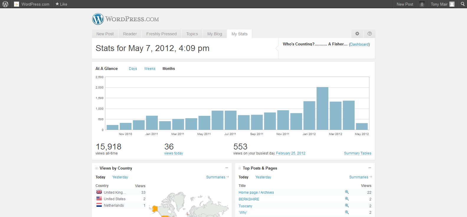The total number of visits has grown to nearly 16000, and in six weeks time, I will have had as many by the middle of June, as in the whole of 2011.